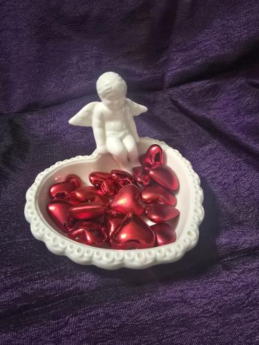 Exquisitely crafted, this charming porcelain dish features a beautifully detailed cherub resting against a large shell. Ideal for holding trinkets or as a decorative standalone piece, it captures the ...