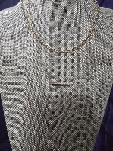 Enhance your style with this elegant layered gold-tone necklace set, featuring a delicate chain with a minimalist bar pendant complemented by a chic paperclip chain. Perfect for everyday wear or speci...