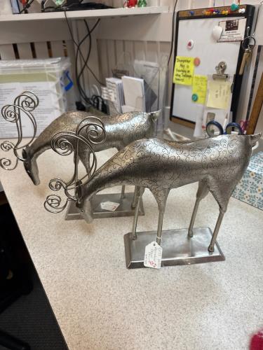 Add a touch of elegance to your holiday decor with these exquisite decorative metal reindeer sculptures. Each piece features intricate swirl detailing and a sleek, modern design, perfect for adorning ...