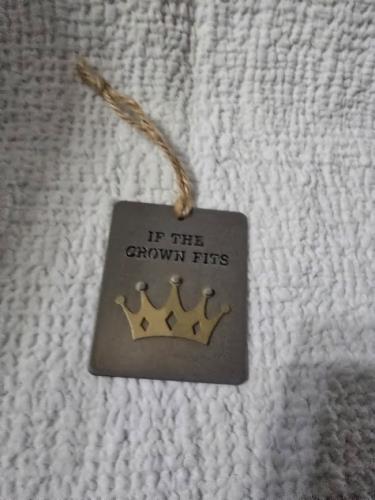 Add a regal touch to your decor with this charming decorative tag featuring the phrase "If The Crown Fits" accompanied by a crowned design. Crafted from durable material, it's perfect for hanging in a...