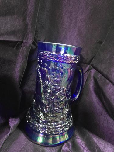 Fenton American Bicentennial 1776-1976 Purple Irid Blue Carnival Glass Mug Stein