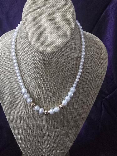 Faux Pearl and Gold Bead Necklace