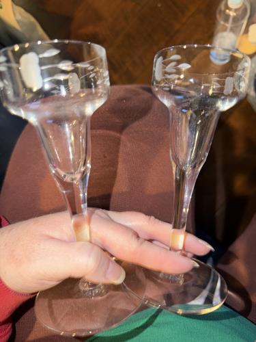 Etched glass candlestick holder set of 2