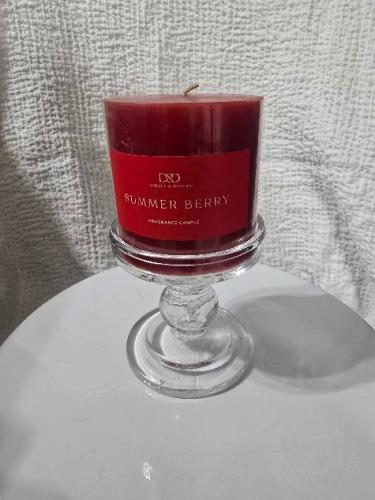 Glass Candle Holder w/Red Candle