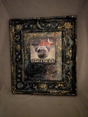 Illuminate your space with the whimsical charm of the "Celestial Canine" framed artwork. This captivating piece features a charming depiction of a dog, surrounded by the inspirational quote "We all sh...