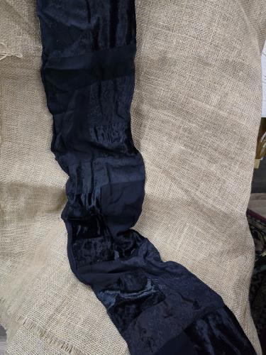 This elegant vintage scarf showcases a sophisticated patchwork design crafted from luxurious black velvet. Its varied textures and subtle floral patterns make it a timeless accessory for any wardrobe....