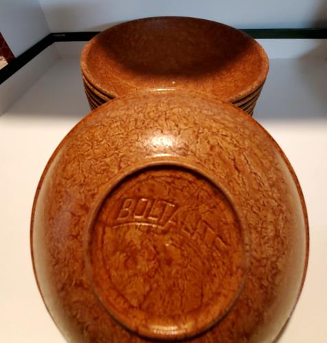 Delight in the charm of the mid-20th century with this exquisite set of four Boltalite brown dessert bowls. Crafted during the 1950s, each bowl features the classic, durable construction typical of Bo...
