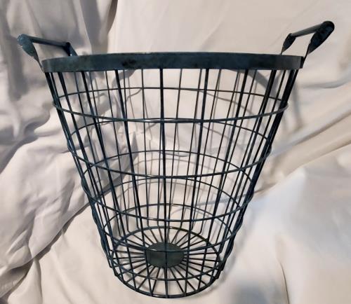 Transport yourself back to the mid-20th century with this charming vintage blue metal laundry basket, an embodiment of the classic American household’s utility and style from the 1950s. Crafted from d...