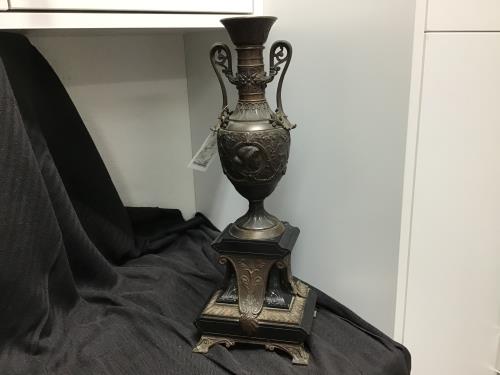 Elevate your home decor with this exquisite vintage urn, crafted from elegant brass and luxurious black marble. Featuring intricate detailing and a classic silhouette, this piece is a testament to fin...