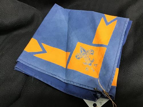This vintage Boy Scouts of America neckerchief features classic blue and orange hues with the iconic BSA emblem. A perfect addition for collectors or former scouts, this piece captures the spirit of s...