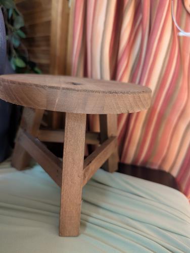 This charming vintage wooden milking stool is a delightful accent piece for rustic or farmhouse decor. Crafted from solid wood, it features a simple yet sturdy design with three legs, making it both f...
