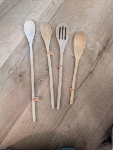 This charming vintage wooden spoon set contains four essential utensils, perfect for adding a touch of rustic elegance to your kitchen. Each piece showcases unique natural wood patterns and includes a...