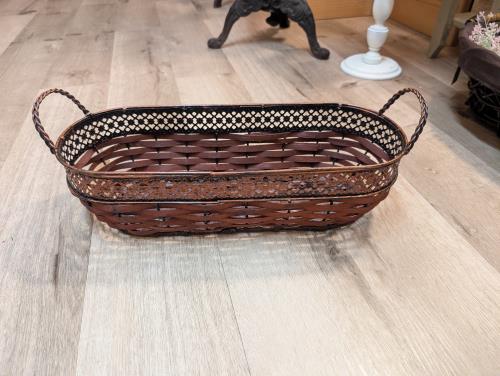 This charming vintage wicker bread basket features elegant metal accents, blending rustic appeal with classic design. Perfect for serving bread, fruits, or as a decorative piece, the basket's woven pa...