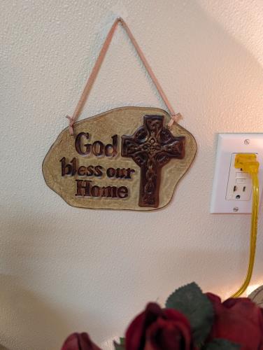 Enhance your home's warmth and spirit with this charming wall plaque, featuring a heartfelt "God Bless Our Home" message alongside an intricately designed cross. Perfect for adding an inspirational to...