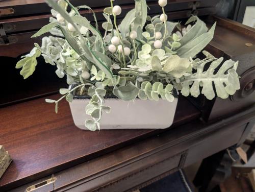 This charming faux greenery arrangement features lifelike leaves and berries, artfully placed in a sleek, rectangular ceramic planter. Perfect for adding a touch of nature to any space, this maintenan...