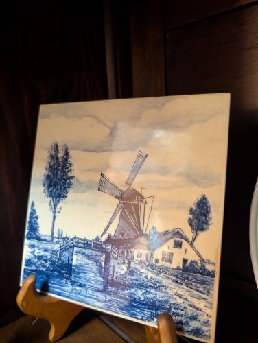 This exquisite Delft Blue tile features a charming windmill scene, capturing the serene beauty of the Dutch countryside. Hand-painted in traditional blue and white, it embodies the classic style of De...