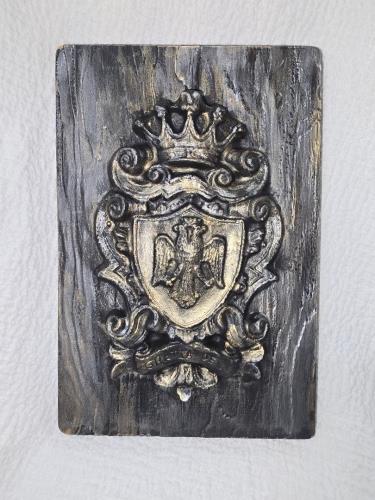 Elevate your décor with this striking plaster wall plaque, featuring a boldly sculpted eagle inside the shield. This piece captures the spirit of post-war America, where symbols of strength and freedo...