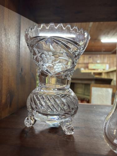 Elevate your home decor with this exquisite vintage cut crystal vase, crafted in Europe in the mid-20th century. This piece features intricate detailing, with precise cuts that capture and reflect lig...
