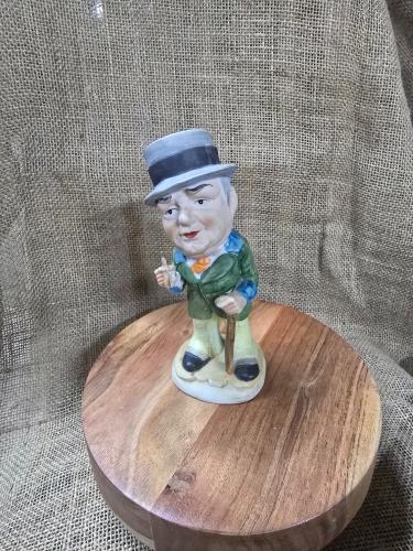 This charming vintage porcelain figurine, reminiscent of a classic W.C Fields figurine, features a whimsical gentleman complete with a cane and bowler hat. Hand-painted with vivid colors, it embodies ...