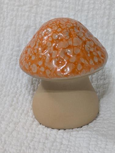 This charming vintage ceramic mushroom figurine features a delightful orange-glazed cap with intricate speckled details. Its whimsical design makes it a perfect addition to any collection of vintage d...