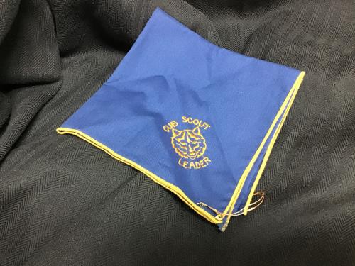 This vintage Cub Scout Leader neckerchief is a delightful piece of scouting memorabilia. Made from durable fabric, it features the classic blue and yellow design with the embroidered Cub Scout Leader ...