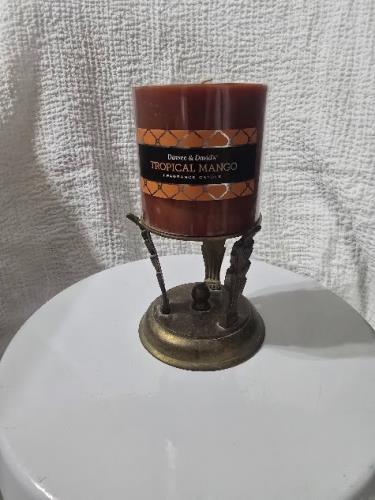 Enhance your space with this charming bronze candle holder, featuring a delightful Tropical Mango fragrance candle by Darsee & David's. The ornate holder adds a touch of elegance, while the vibrant an...