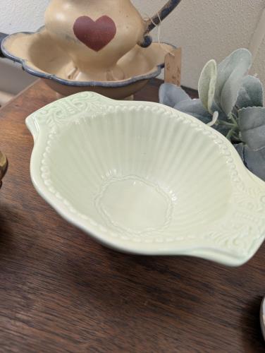 This charming vintage shell dish by Haeger Pottery is a delightful addition to any collection. Crafted in a soft green hue, it features intricate embossed detailing along the edges, reminiscent of cla...