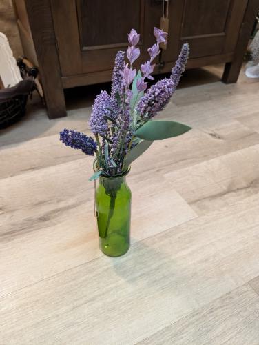 This charming vintage green glass bottle is the perfect accent for any space, filled with realistic lavender sprigs that add a touch of rustic charm. The simple elegance of the green glass complements...