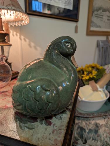 This enchanting vintage green ceramic duck figurine adds a touch of rustic charm to any space. With its smooth, glossy finish and delicate detailing, this piece is perfect for collectors and animal lo...