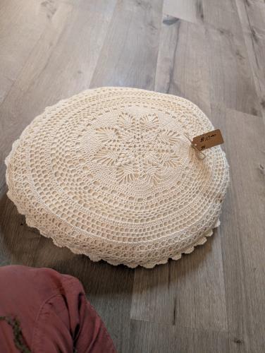 This charming vintage cushion features a beautifully hand-crocheted doily design, perfect for adding a touch of elegance to any living space. The intricate lacework showcases exquisite craftsmanship a...