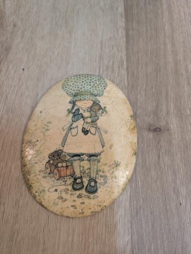 This charming vintage wall plaque features the beloved figure of Holly Hobbie, capturing a nostalgic scene with its characteristic rustic and homey style. Made in the 1970s, this piece makes a perfect...